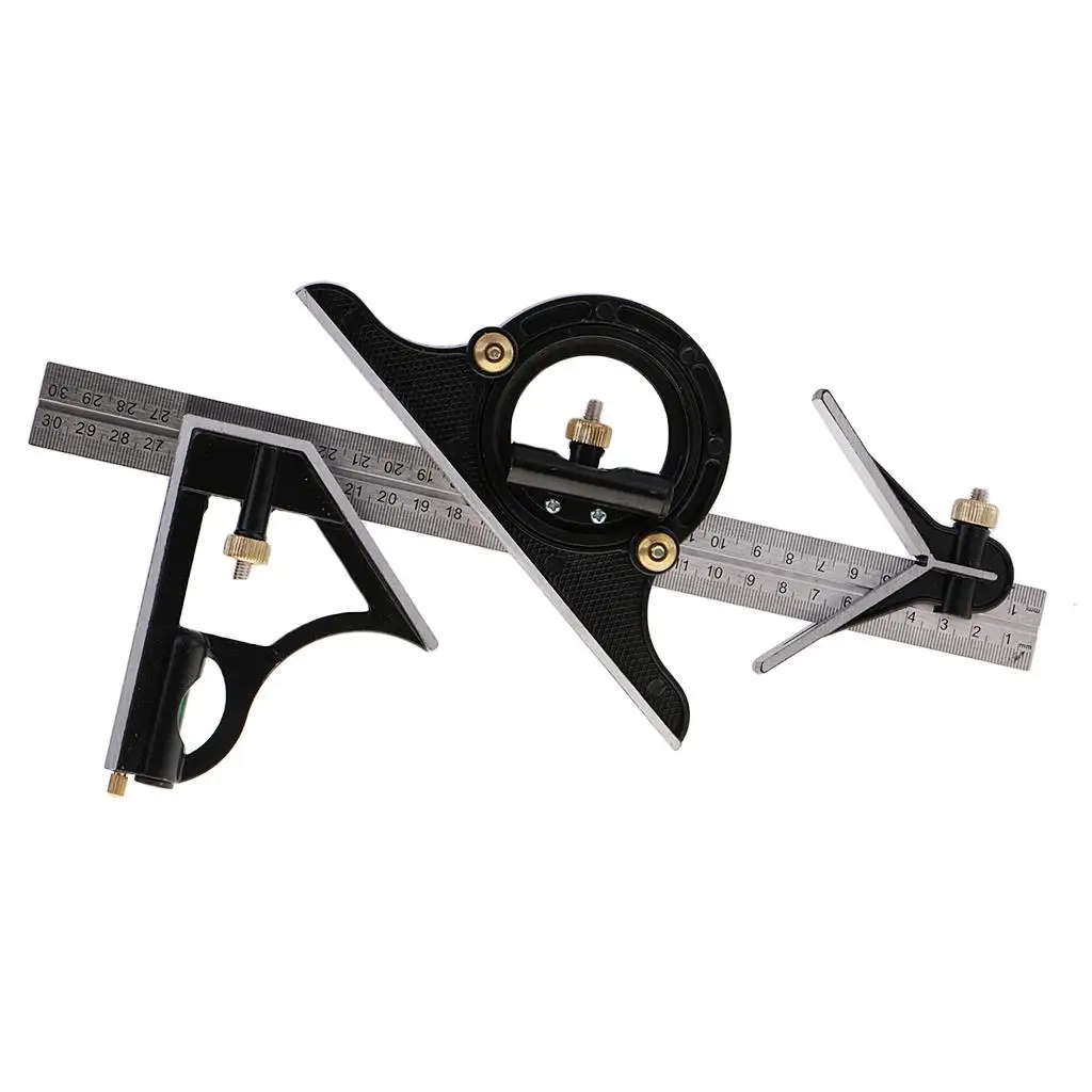 Комбинированный квадратный набор из нержавеющей стали, измерительный инструмент, комбинированный транспортир, угловая линейка, измерение 0-300 мм