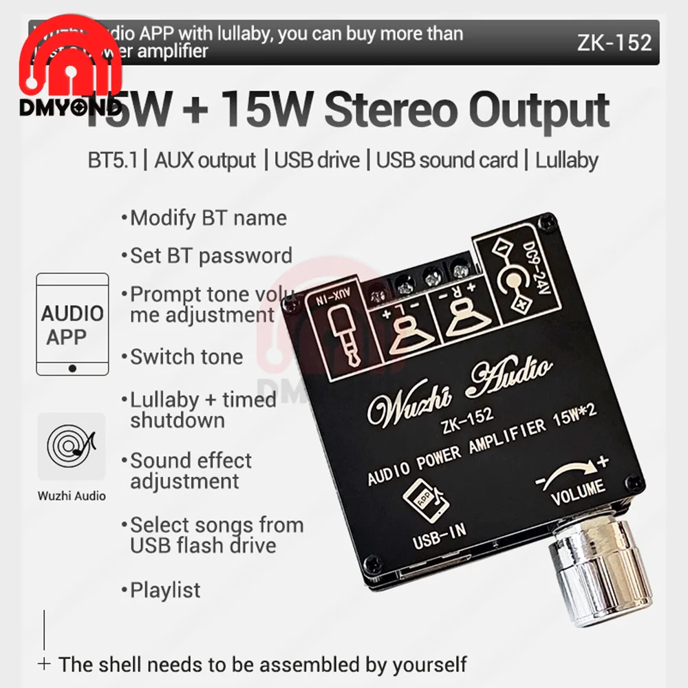 Плата усилителя сабвуфера 5,1, совместимая с Bluetooth, 15 Вт x2 + 30 Вт, 2,1 каналов, Плата усилителя мощности звука, стерео, усилитель басов