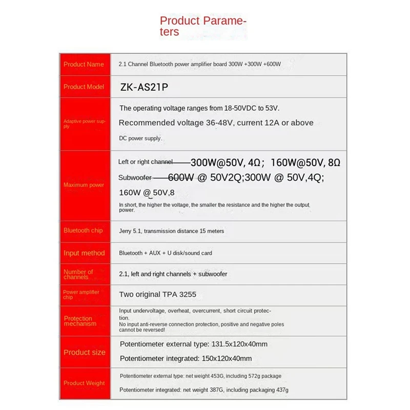 Плата цифрового усилителя мощности AS21P Bluetooth 5,1, 2,1 каналов, TPA3255, постоянный ток 18-50 в для Динамика сабвуфера