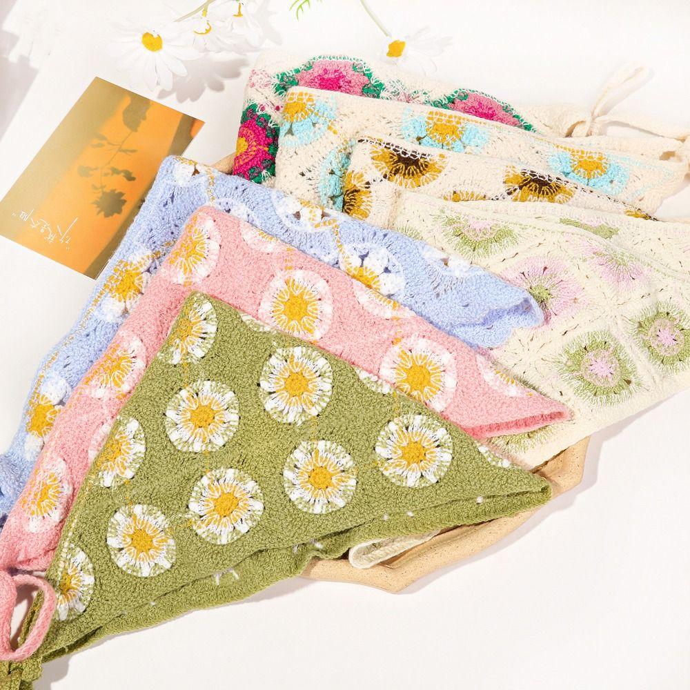 Платок Вязаный треугольный платок Ins Пасторальный стиль Повязка на голову с ромашками Симпатичные головные уборы для девочек