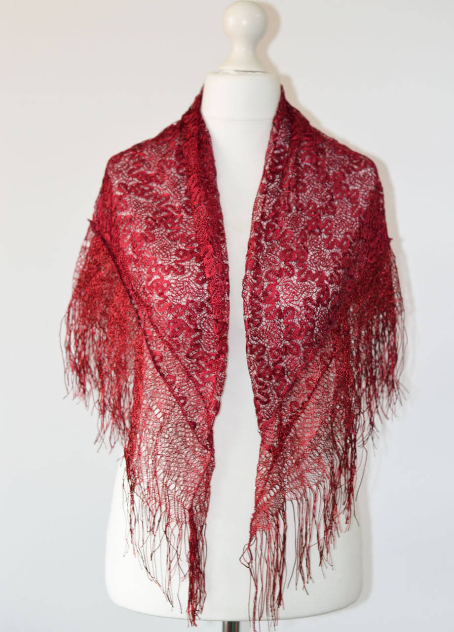 Платок ажурный с бахромой (бордовый), Разные цвета