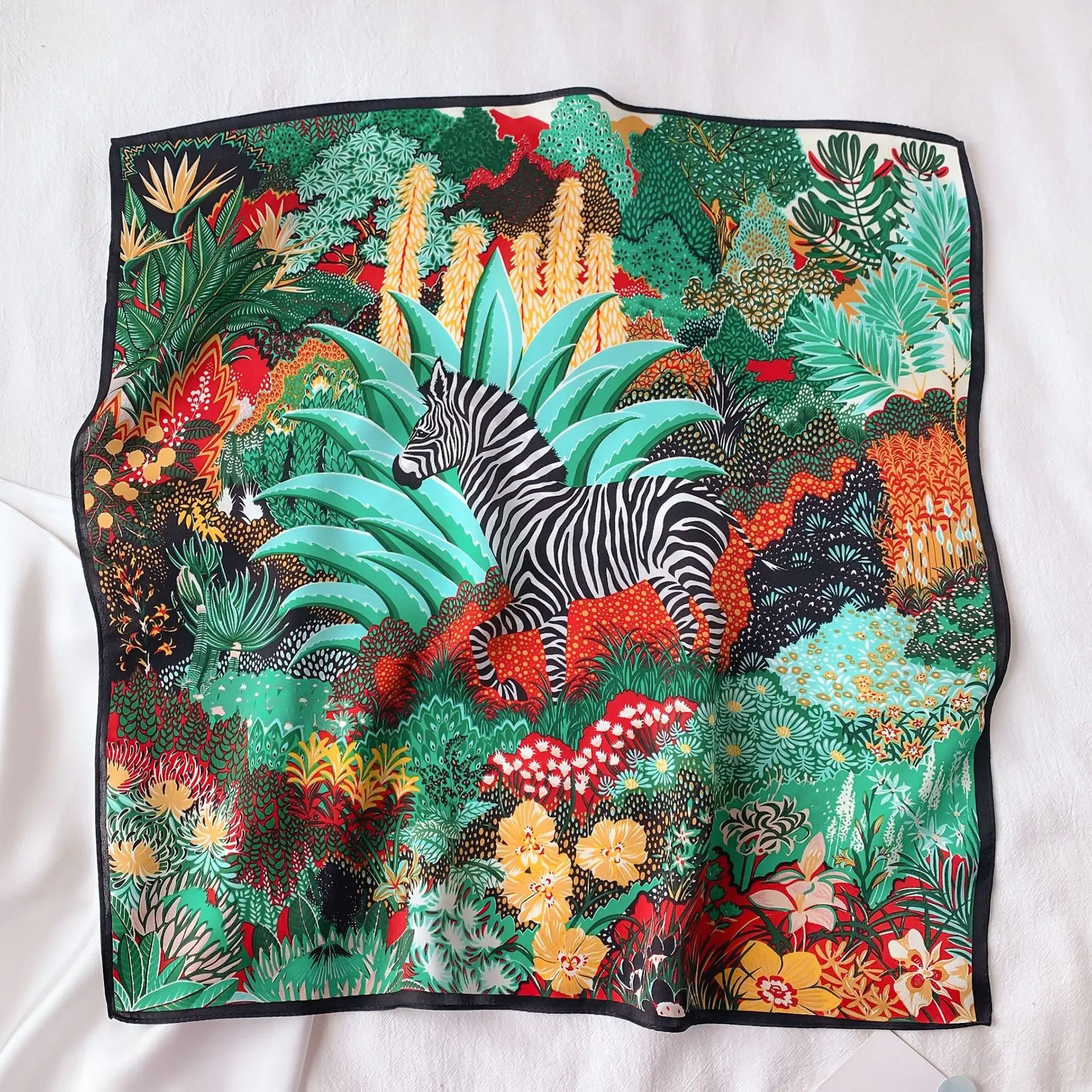 Платок женский, из 100% натурального шелка, атласа, с цветочным принтом, квадратный, 2020, шарф на голову