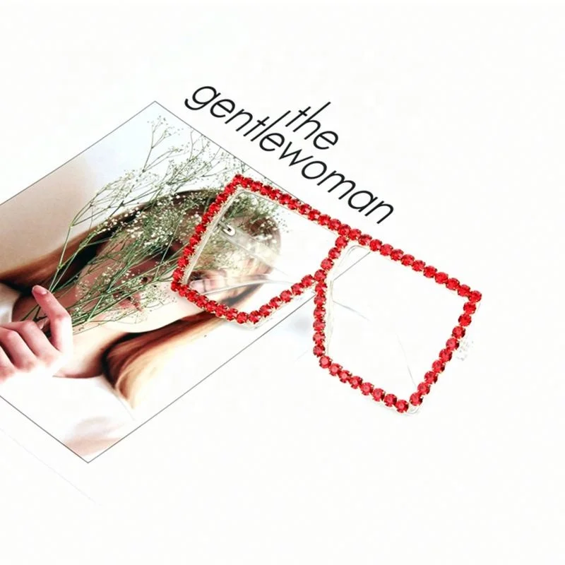 Fashion Transparent Lens Women Diamond Frame Sun Glasses Crystal Rhinestone Sunglasses in Stock, Colors