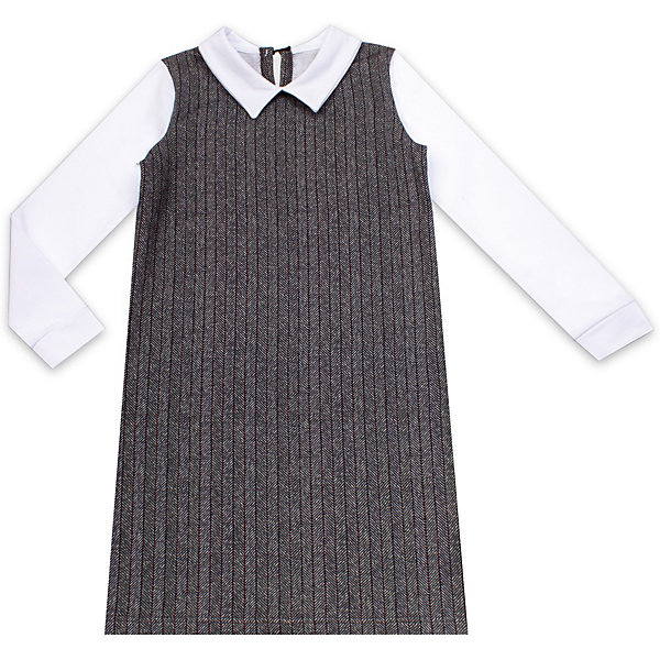 Базовое платье с контрастными длинными рукавами и отложным воротником. Крой свободный, комфортен при носке. В составе присутствует натуральный дышащий материал.