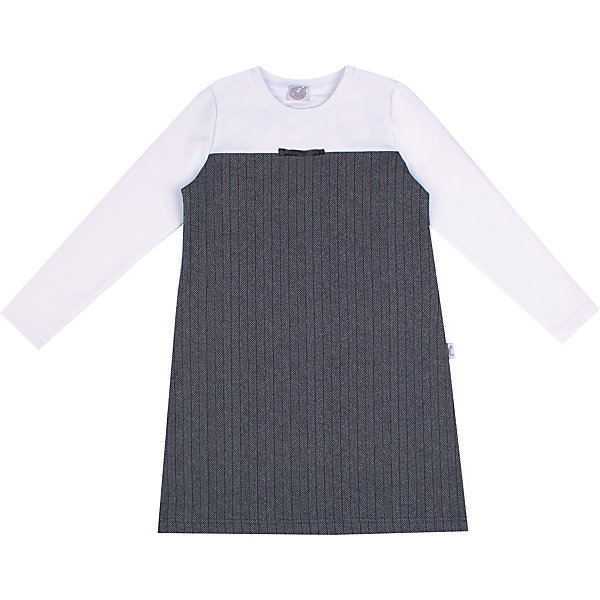 Трикотажное платье школьное Апрель с круглым вырезом горловины и длинными рукавами. Одевается через голову, не имеет застежек. Девочке будет удобно и комфортно в школе в таком стильном платье от российского бренда Апрель.