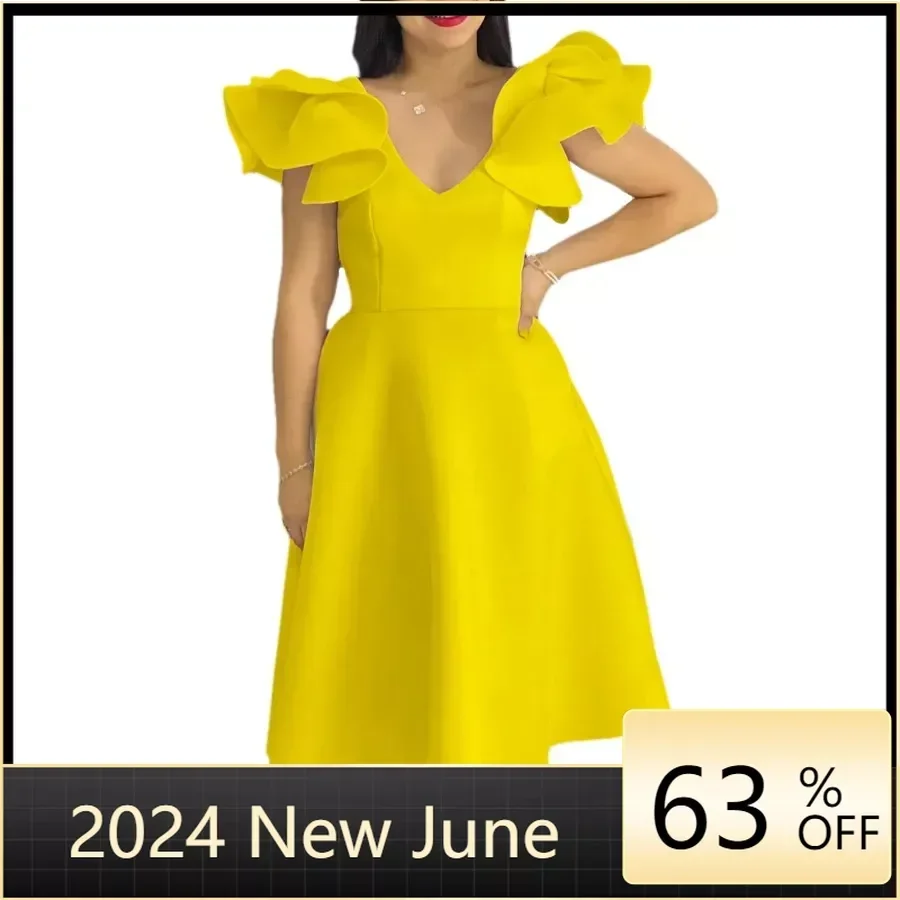 Платье Африканское летнее средней длины с коротким рукавом и V-образным вырезом