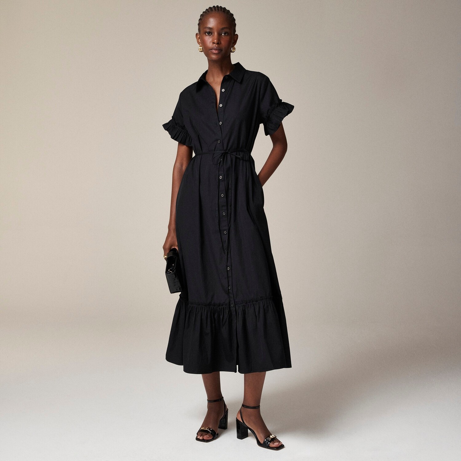 Платье-Рубашка макси Amelia из хлопкового поплина J.Crew, черный