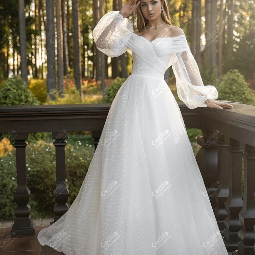 Платье Свадебное ТРАПЕЦИЕВИДНОЕ из фатина, с открытыми плечами и открытой спиной