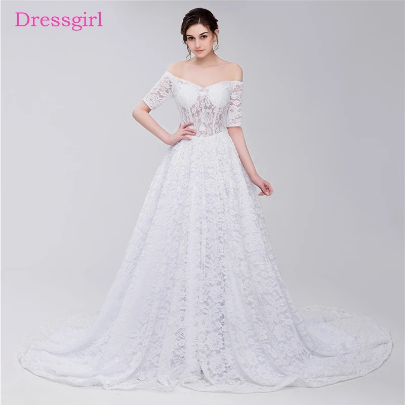 Платье Свадебное ТРАПЕЦИЕВИДНОЕ с V-образным вырезом и полурукавами