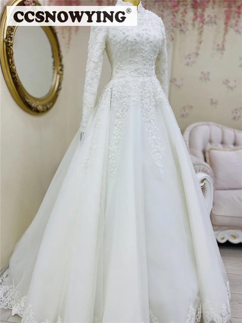 Платье Свадебное мусульманское ТРАПЕЦИЕВИДНОЕ с длинными рукавами и аппликацией