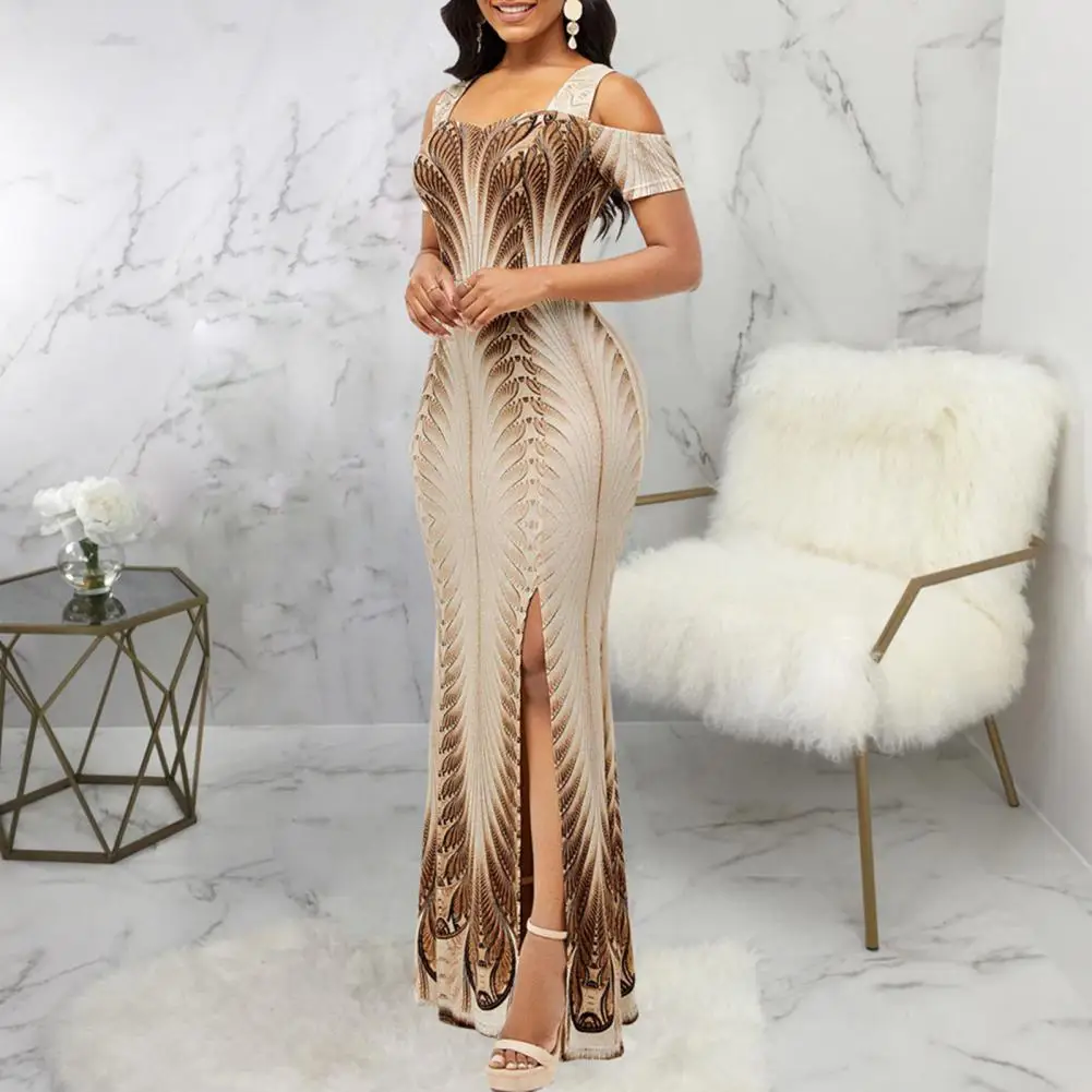 Платье-бандо вечерние ское вечернее с коротким рукавом и цифровым 3D принтом