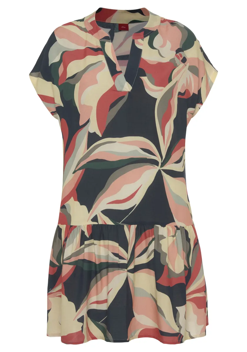Платье-блузка S.Oliver, с воланом на юбке, короткое летнее платье, пляжное платье, коралловый