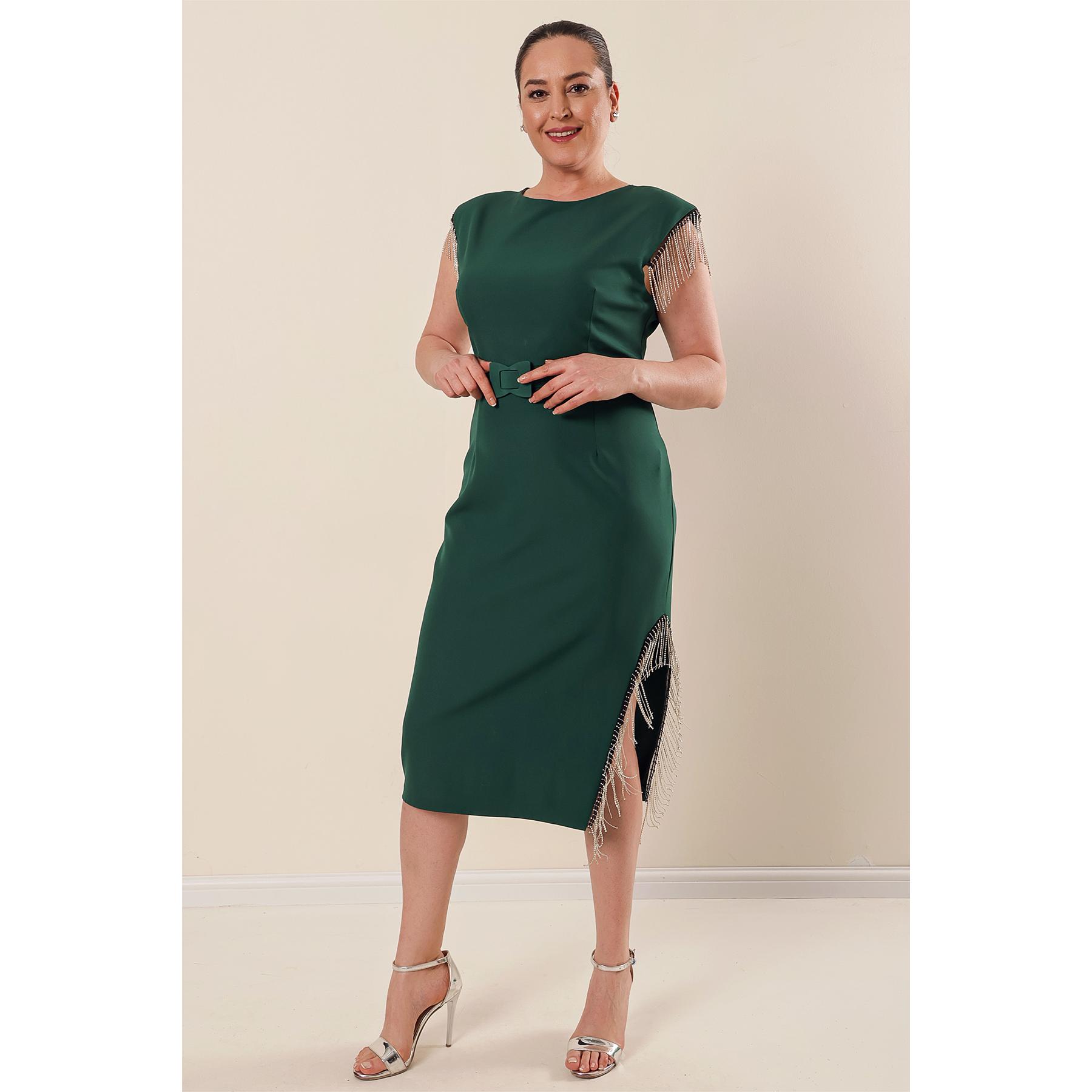 Платье большого размера с вышитым камнем поясом на плечах и подоле