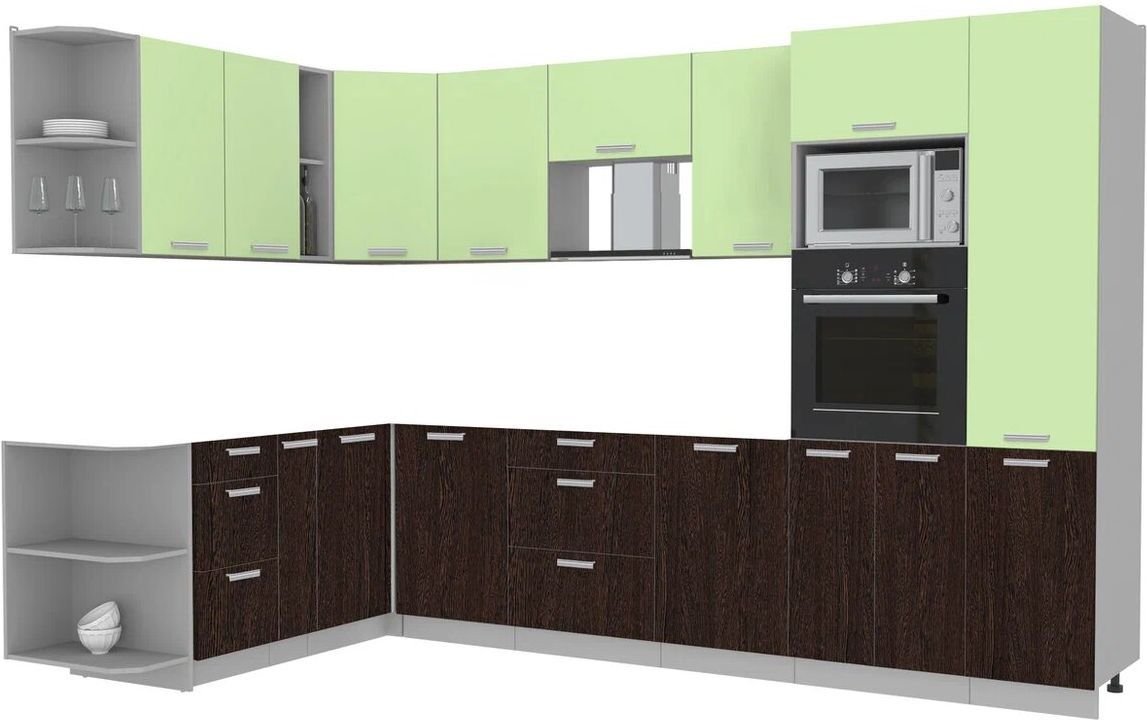 Готовая кухня Интерлиния Мила Лайт 1.88x3.2 левая без столешницы (салатовый/дуб венге)
