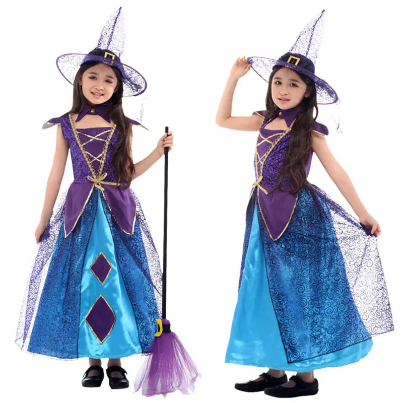 Платье ведьмы для косплея на Хэллоуин с сумкой в виде тыквы, карнавальный женский костюм, детское платье, детская одежда для девочек