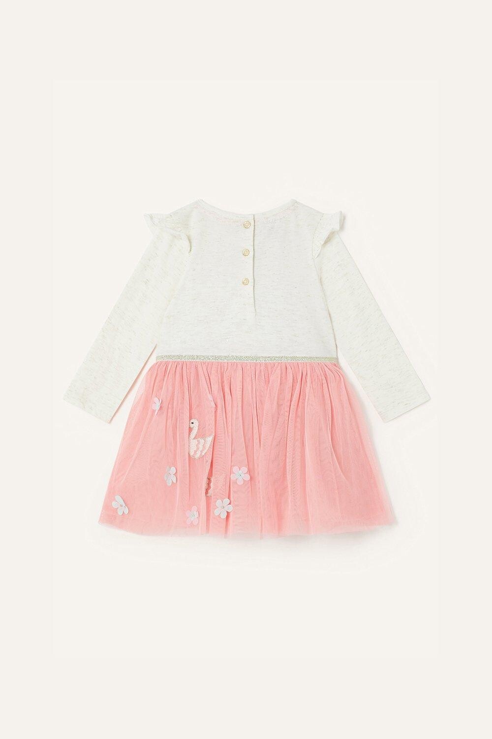В этом диско-платье ваша малышка будет выглядеть красиво и чувствовать себя комфортно. Он имеет красивый сказочный дизайн в стиле коттеджа, переходящий в объемную юбку на сетчатой подкладке. Сзади платья застегиваются на пуговицы, что упрощает процесс смены.