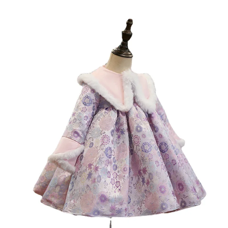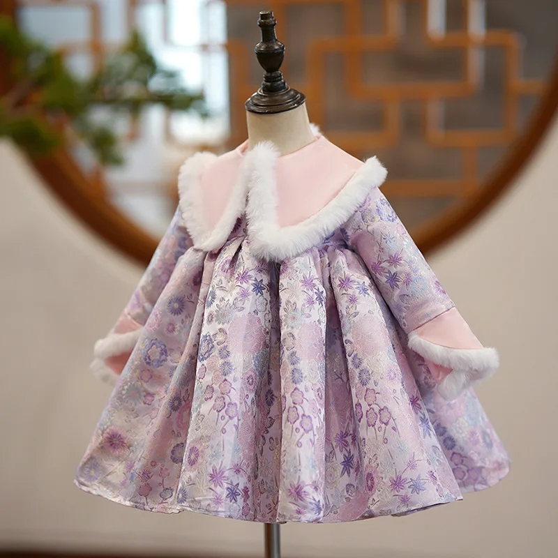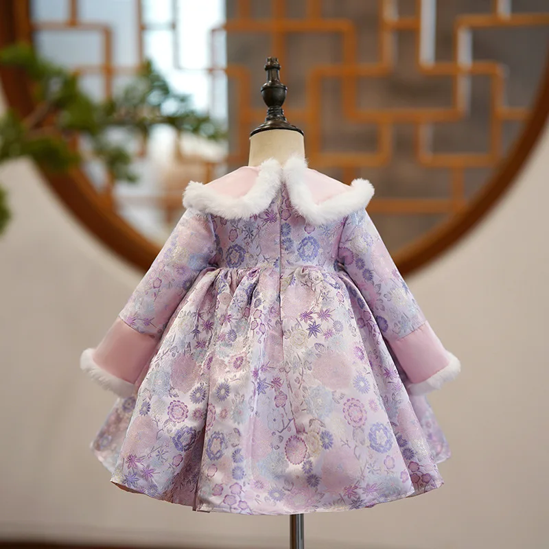 Платье детское Плиссированное с круглым вырезом, длинным рукавом и отложным воротником