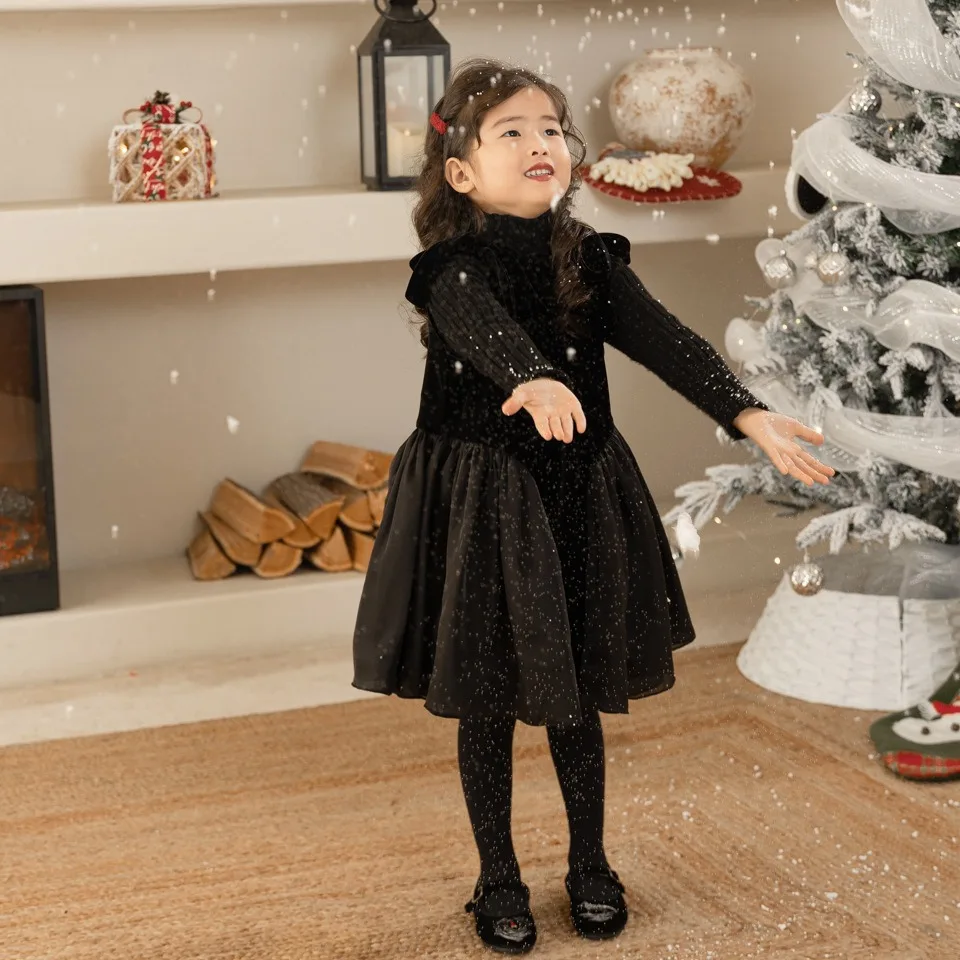 Платье для девочек Новинка Зима 2023 модное бархатное платье Детская Корейская версия модная Комбинированная юбка средней длины