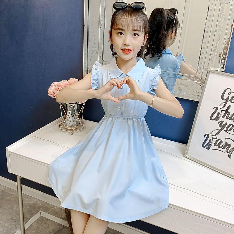 Платье для девочек, летнее платье, детское платье принцессы, корейское платье без рукавов, однотонное модное платье 150