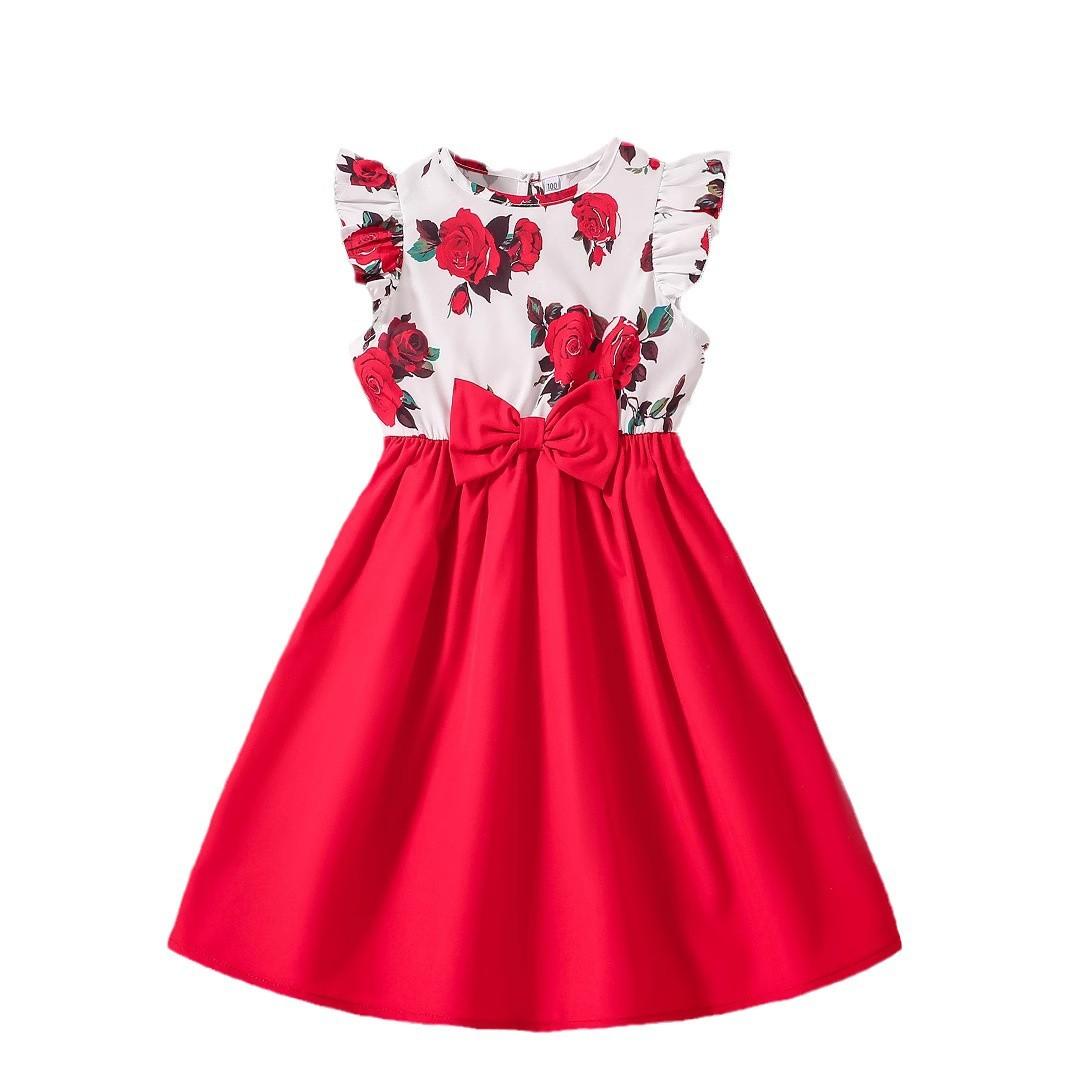 Платье для девочек, летнее детское платье принцессы с милым бантом и цветочным узором 170cm красный