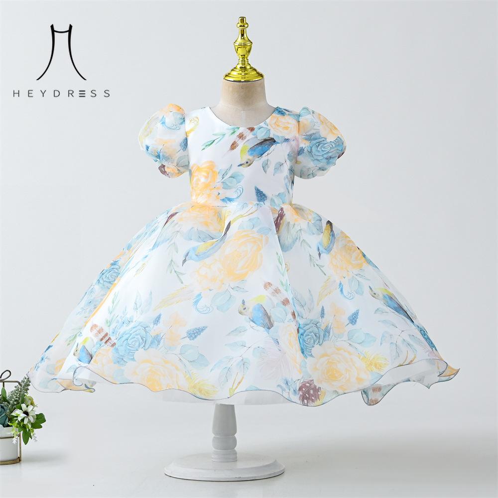 Платье для девочек, летняя детская одежда, новое шифоновое платье принцессы для девочек, недорогое детское платье принцессы с короткими рукавами и принтом 130 жёлтый