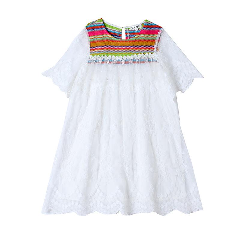 Платье для девочек-подростков, лето 2024, детская одежда, белое кружевное платье для выступлений, трикотажные тюлевые платья принцессы 13T белый