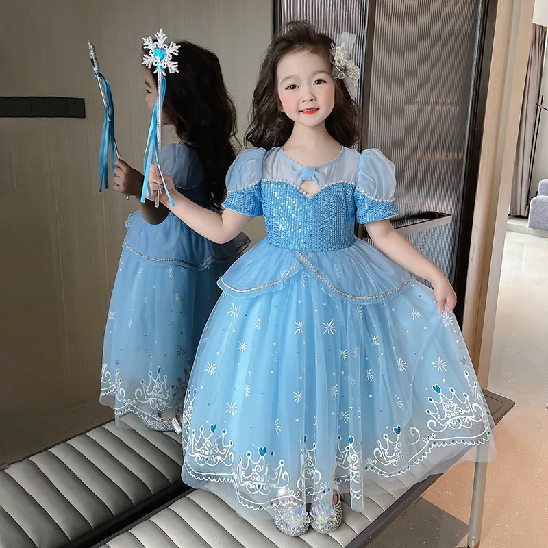 Платье для девочек с блестками, детское летнее платье, детская одежда для девочек, детская одежда с мультяшным рисунком, платья Bluey