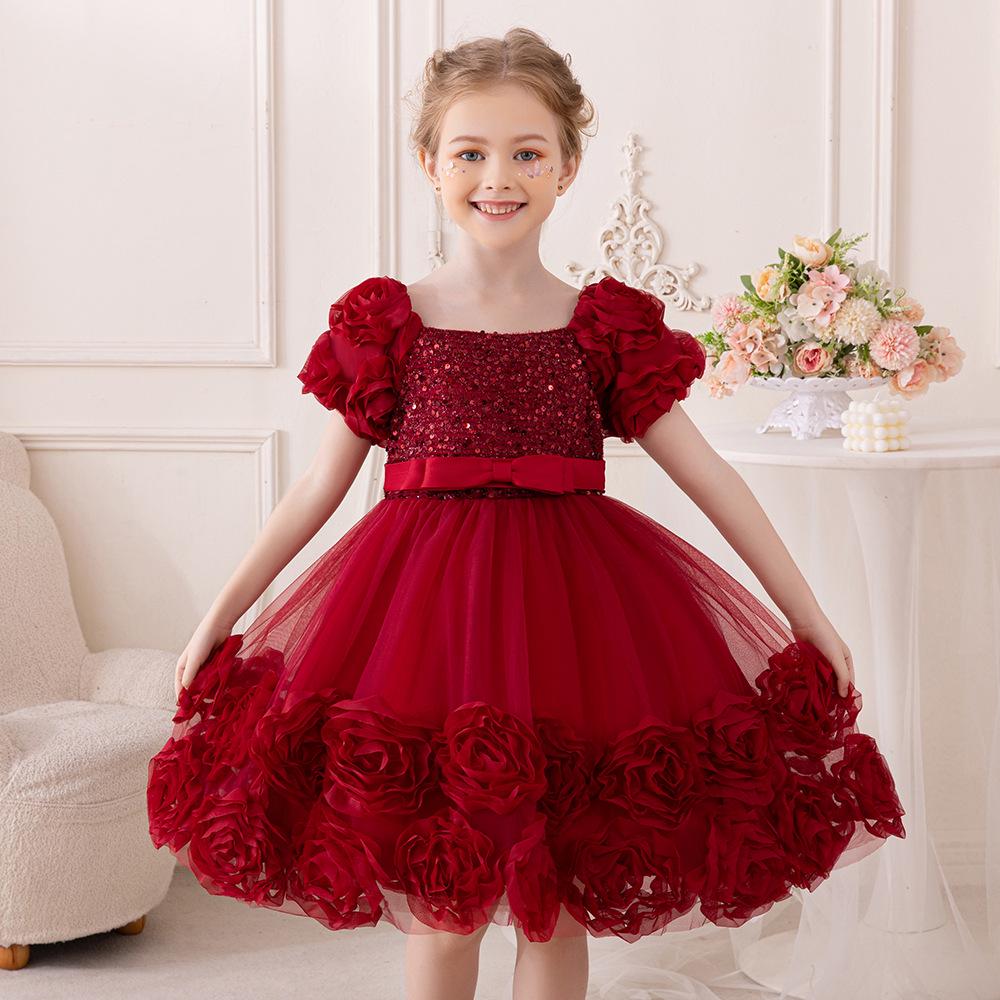 Платье для девочек с пышной юбкой из тюля с цветами - Новая модель, формальная юбка для дней рождения и вечеринок 110cm красный