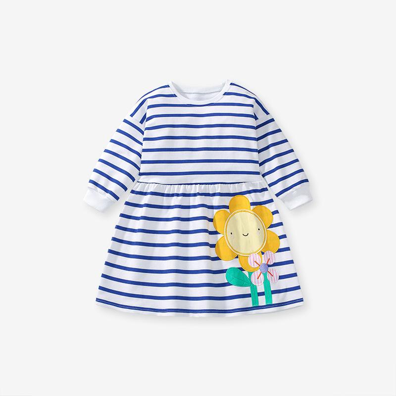 Платье для девочек с рисунком, осенняя детская юбка принцессы с длинными рукавами, хлопковая зауженная вышитая детская юбка 90 синий