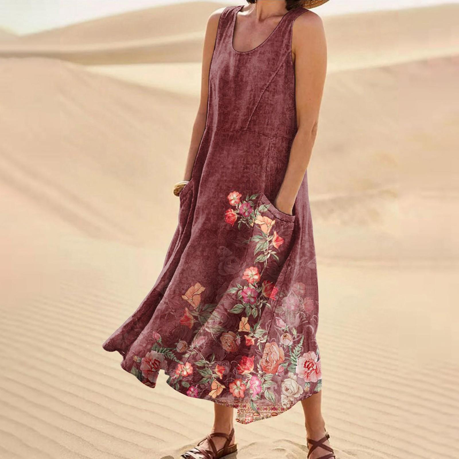 Платье для женщин, весна-лето в стиле бохо, повседневное модное платье без рукавов для праздника, большой размер XL винный