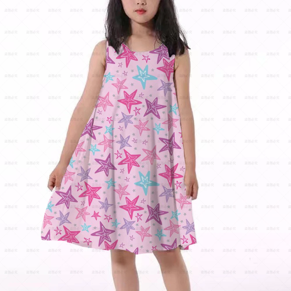 Платье для маленьких девочек, новое платье с цветочным принтом для маленьких девочек, мини-платье принцессы, официальное платье для девочек, платье с принтом пятиконечной звезды