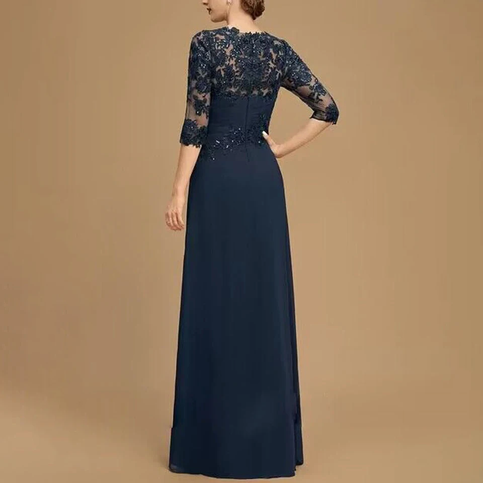 Платье для матери невесты, темно-синее платье с рукавом до локтя и вырезом-лодочкой, 2024