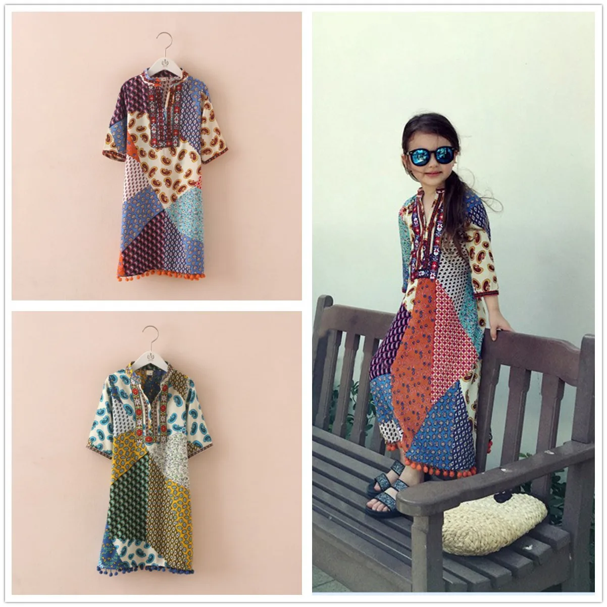 Платье для родителей и детей, летнее платье для мамы и дочки, пляжное платье в этническом стиле из хлопка и шелка с рукавом 3/4, платье для мале...