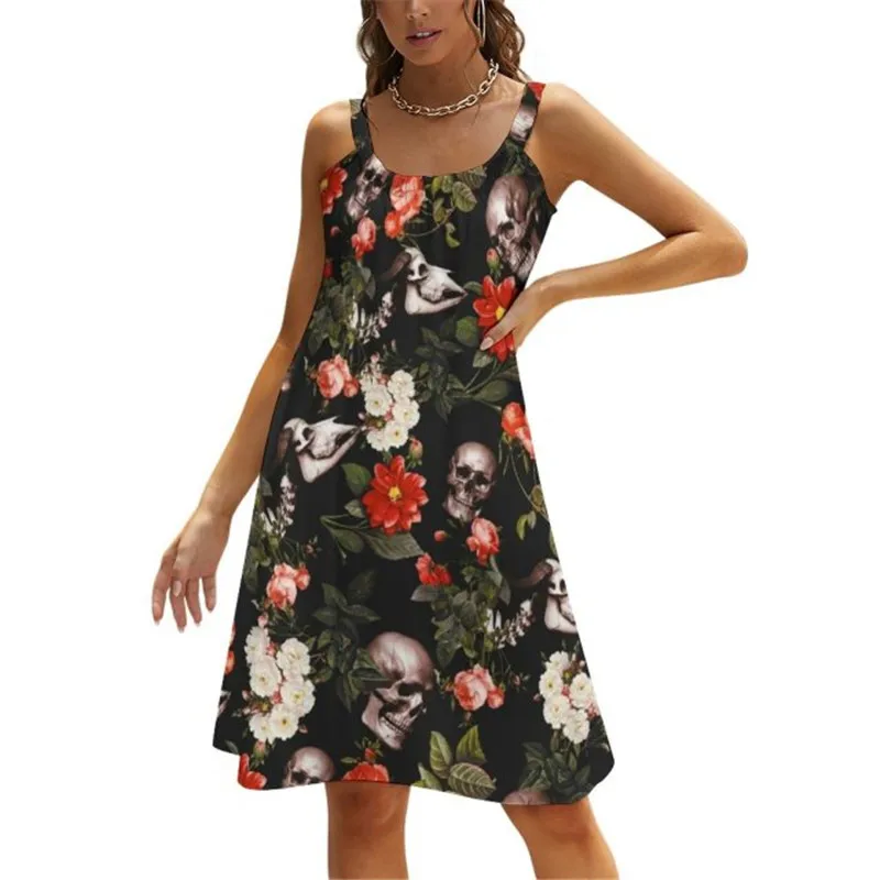 Платье женвечерние длиной до колена, с круглым вырезом, на бретельках
