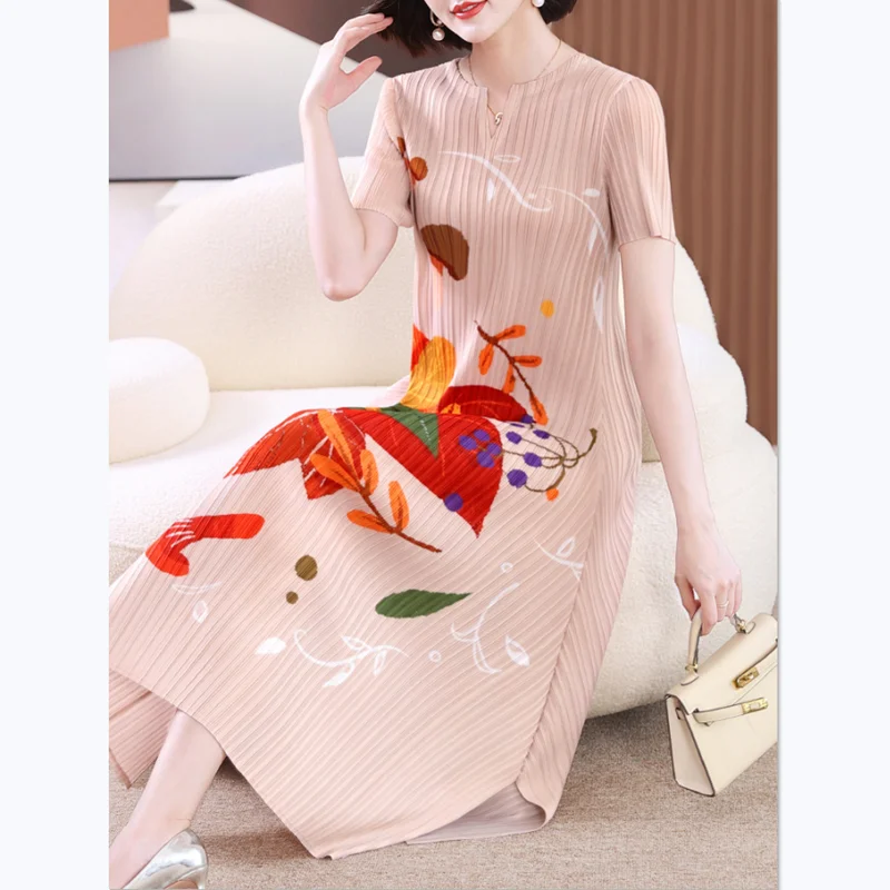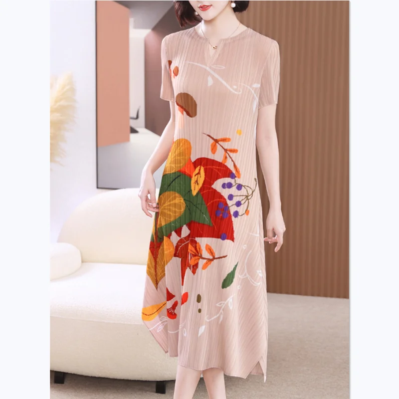 Платье женское Плиссированное с V-образным вырезом и коротким рукавом
