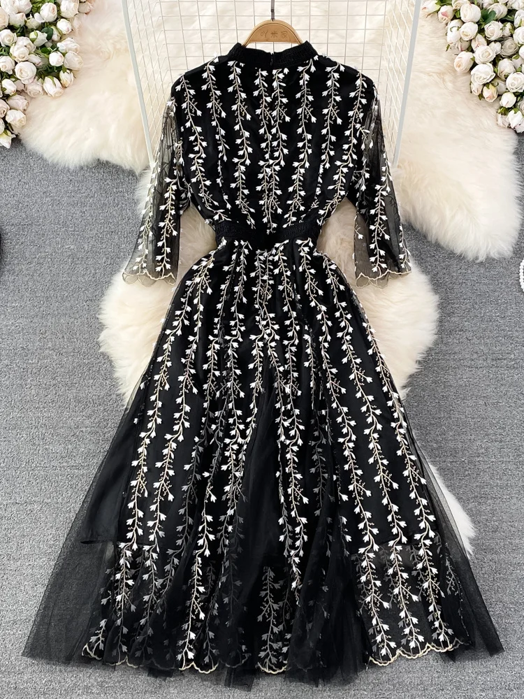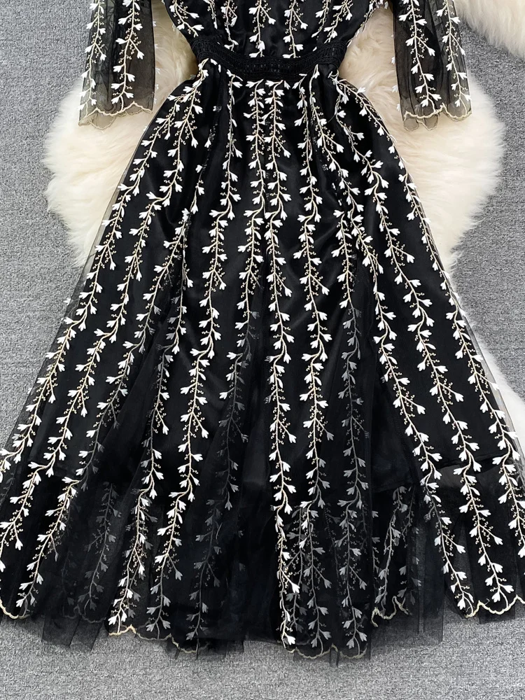 Платье женское Сетчатое составного кроя с длинным рукавом и высокой талией