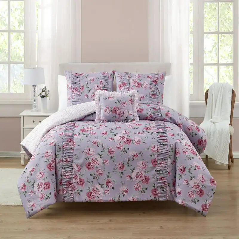 Berry Rose 4-Piece Soft Washed Microfiber Comforter Set, King Shrinkage and Fade Resistant Easy Care For Adults