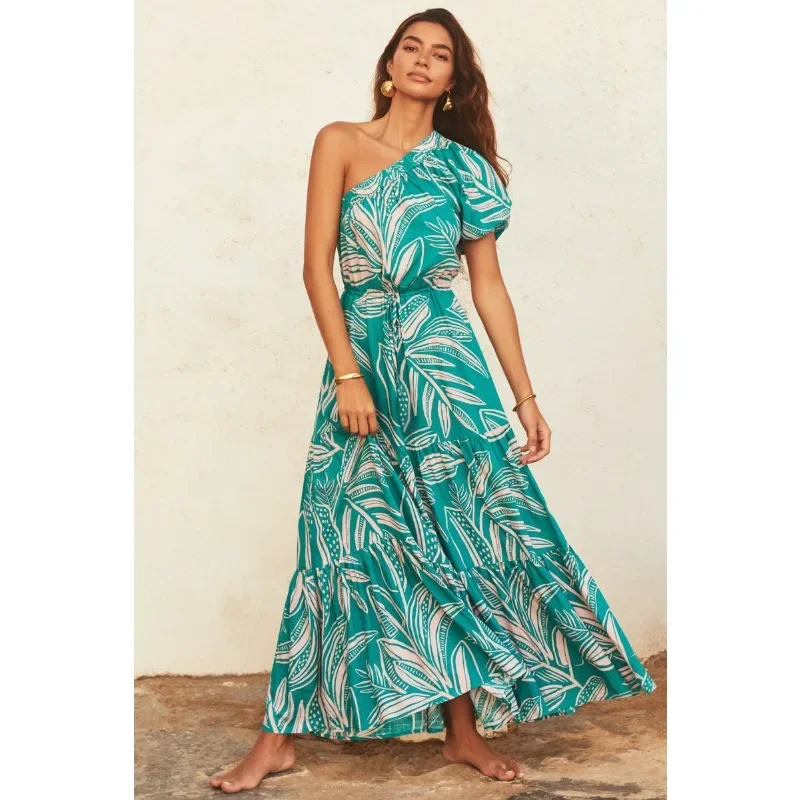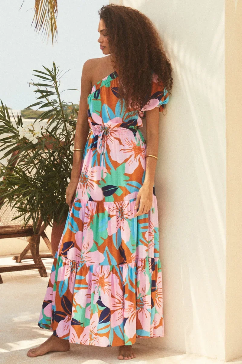 Платье женское ассиметричное с открытой спиной, открытыми плечами и цветочным принтом