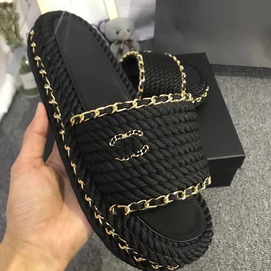 2023ss summer women's slippers designer high-end original LOGO the same flat sandals color woven chain trendy fashion