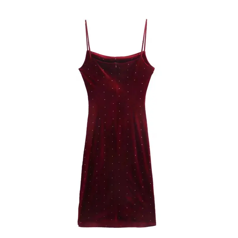 Платье женское бархатное средней длины с молнией сзади и разрезом на подоле
