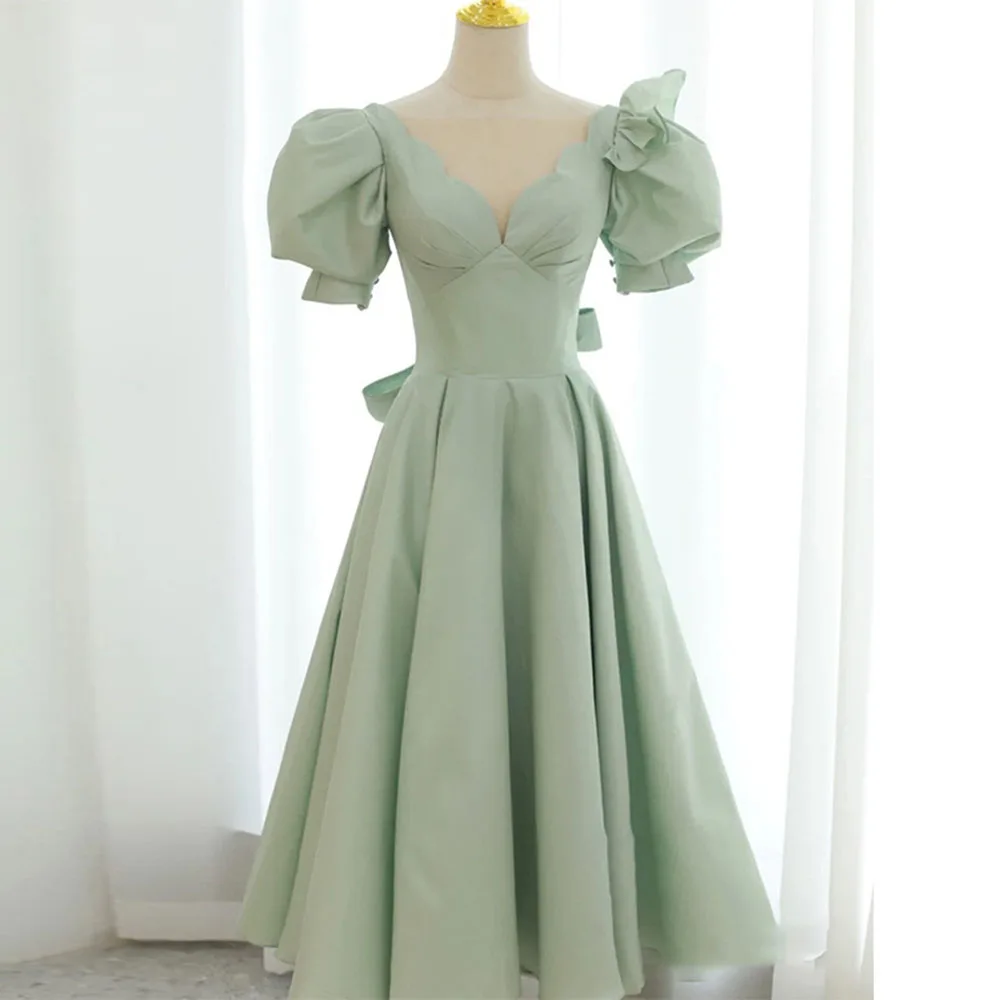 Платье женское вечернее ТРАПЕЦИЕВИДНОЕ с V-образным вырезом и коротким рукавом-фонариком