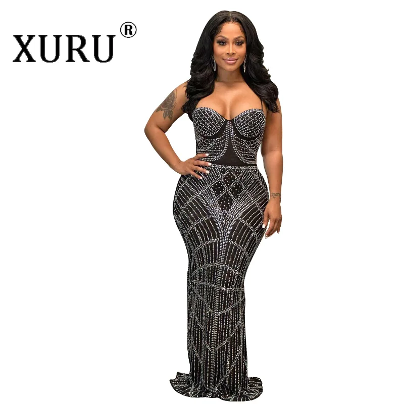 Платье женское длинное из сетчатой ткани, в европейском и американском стиле