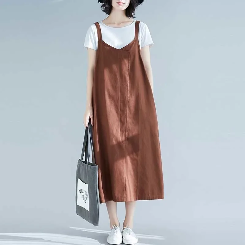Платье женское длинное из хлопка и льна, на тонких бретельках, с V-образным вырезом