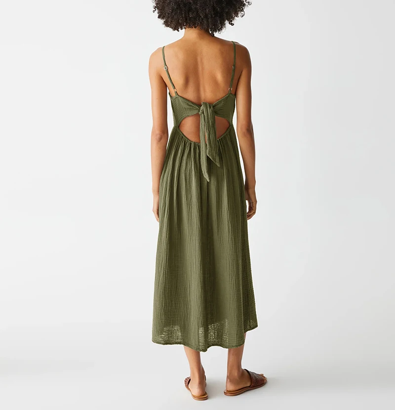 Платье женское длинное из 100% хлопка, пикантное элегантное вечернее из марли, без рукавов, с регулируемыми бретельками и бантом на спине