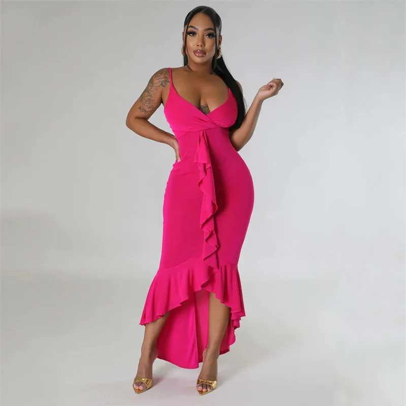 Платье женское длинное на тонких бретельках с V-образным вырезом, без рукавов