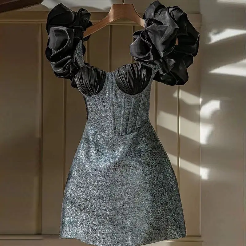 Платье женское короткое с квадратным вырезом, модное яркое осеннее короткое платье, весна-лето