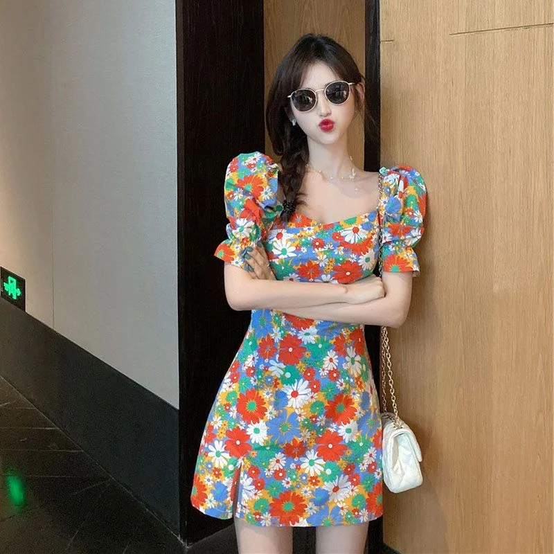 Платье женское летнее ТРАПЕЦИЕВИДНОЕ с квадратным вырезом и цветочным принтом
