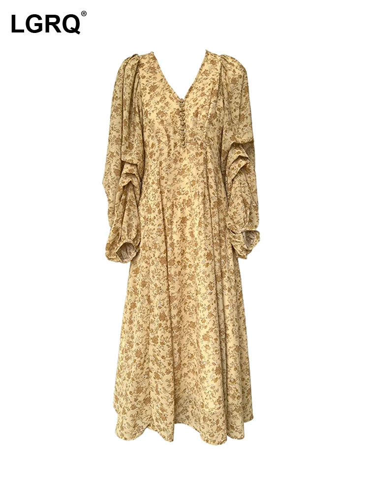 Платье женское летнее с V-образным вырезом и длинным рукавом-фонариком