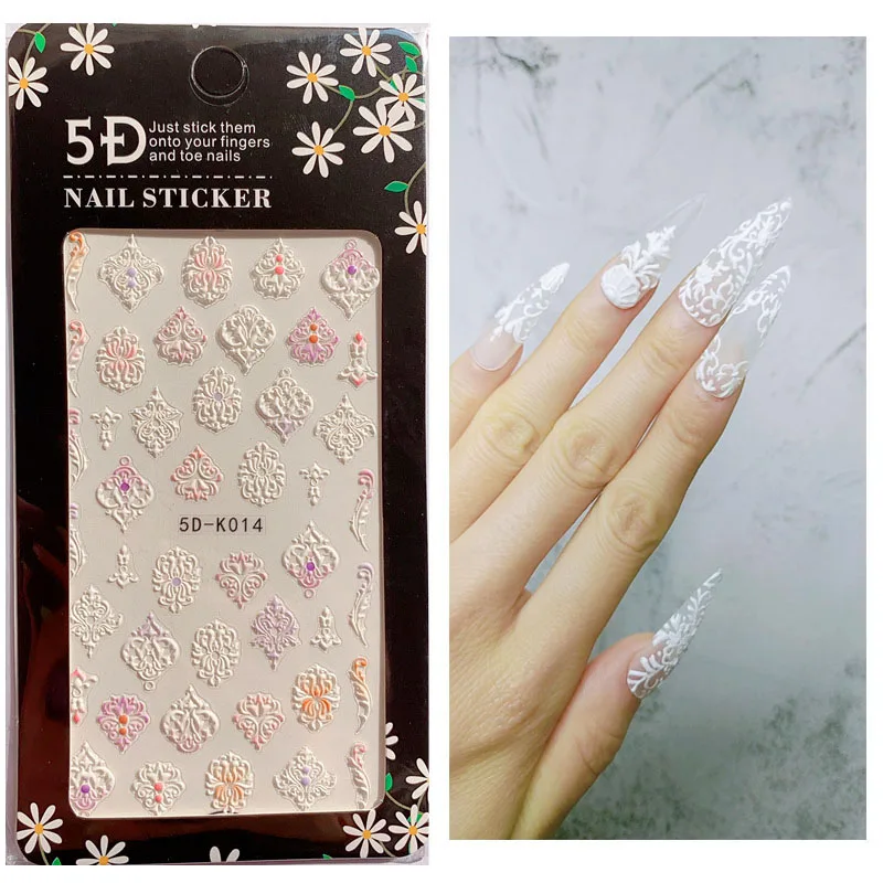 3D Relief Nail Stickers Butterfly Flower Embossed Engraved Manicure DIY Decal Nail Decoration Self Adhesive Nail Art Decals