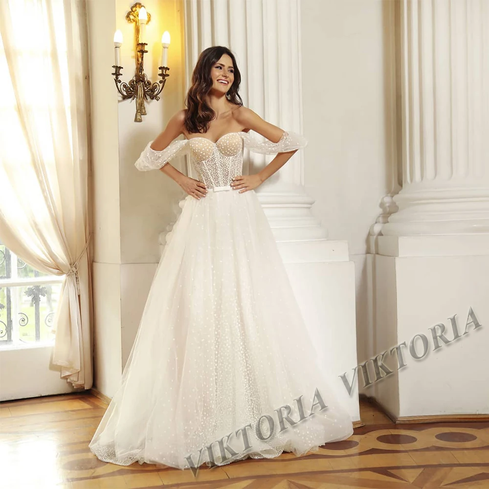 Платье женское свадебное ТРАПЕЦИЕВИДНОЕ с открытыми плечами и аппликацией